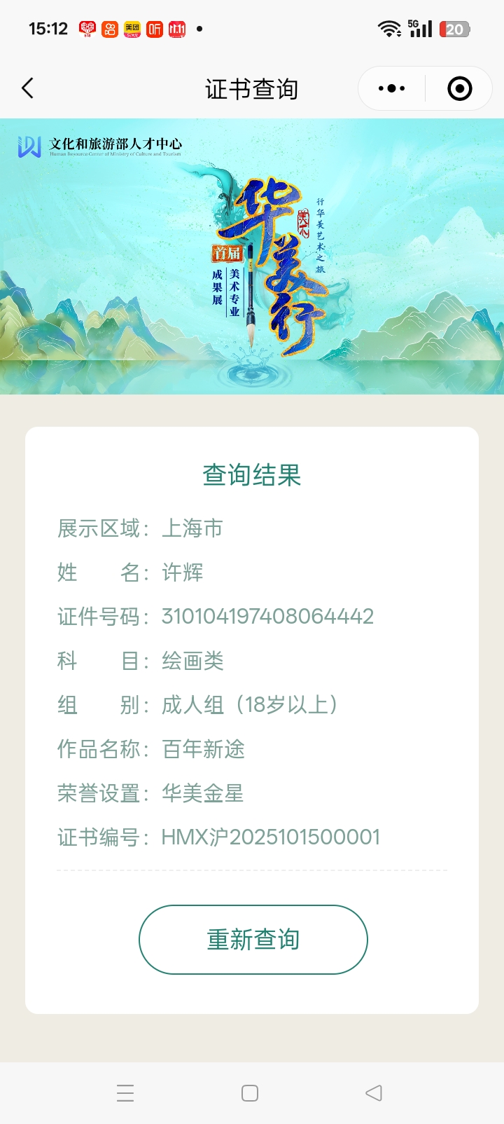 XU HUI’s hand painted silk artwork has been selected and showed in the "Huameixing" Fine Arts Professional Achievement Exhibition, and obtained the "Hua Mei Gloden Star" award in the exhibition. The certificates are recorded in the “Humeixing” column of the Talent Center of the Ministry of Culture and Tourism website and “Humeixing” Wechat Mini Program.